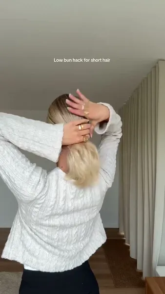 Когда я впервые увидела этот лайфхак с низким пучком для коротких волос, то, честно говоря, обалдела настолько, что не могла вымолвить ни слова. Как показано в одном видео, все, что нужно — это завязать волосы в низкий хвост и подвернуть концы внутрь, получив аккуратный результат. Быстро, умно и стильно!