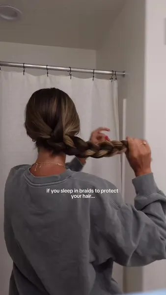 Перед сном достаточно хорошо расчесать волосы, нагнуть голову, перекинуть все локоны вперед к лицу и уже в таком положении плести расслабленную косу. Ночью такая прическа точно не помешает сну, потому что будет перекинута на одну из сторон пробора. При этом на утро ты проснешься не только с готовыми локонами, но и с крутым объемом у корней, которого обычно нужно добиваться с помощью фена и брашинга.
