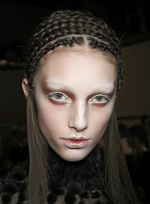 Совсем экзотично смотрятся косы с показа Alexander McQueen. Они спиралью огибали головы моделей, превращая их в героинь фэнтези-фильмов и сериалов. Самостоятельно справиться с такой прической невозможно, непременно потребуется помощь другого человека. Если на Хэллоуин ты собираешься стать эльфийкой, то вариант с косами Alexander McQueen будет выглядеть впечатляюще.