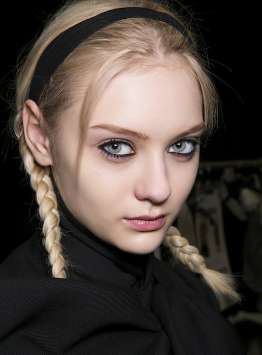Самые привычные варианты кос мы видели на показах Marc by Marc Jacobs, Dolce&Gabbana и Etro. В первом случае это были самые что ни на есть «школьные» косы, которые мамы туго заплетают своим дочкам по утрам, разделив их волосы на аккуратный и строгий прямой пробор. Со стороны они напоминают прическу задорной Пеппи Длинныйчулок.