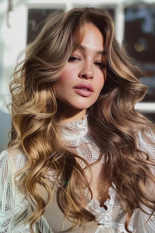 Мягкие волны и легкая слоистость на средней длине делают образ более подвижным и объемным. Такая прическа помогает смягчить геометрию лица и добавляет романтики. Твой уиверсальный вариант на каждый день.