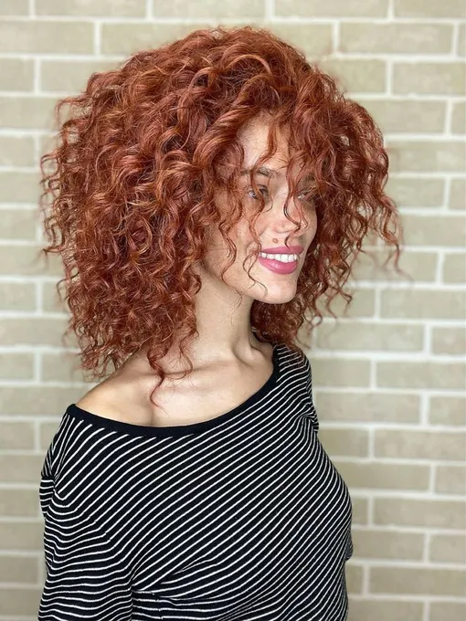 Если твои волосы склонны к завиткам, делай акцент на многослойность. Мягкие локоны и легкая текстура придают движение и объем, а углы лица становятся менее заметными.