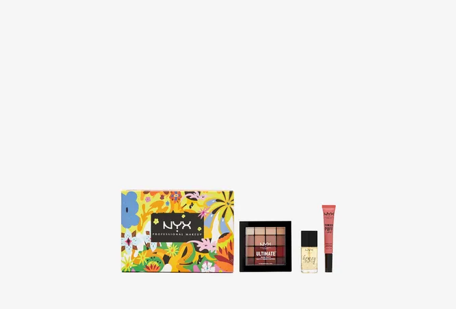 Нюдовая палетка теней, матовая жидкая помада и праймер для лица — это настоящий мейкап-букет для твоей подруги.