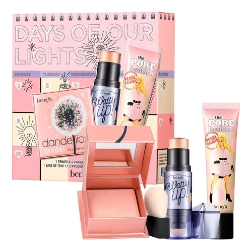 Ищешь небольшой набор косметики для путешествий? Присмотрись к бьюти-киту от Benefit Cosmetics. Там ты найдешь продукты для натурального сияния: праймер, розовую пудру-хайлайтер и кремовый хайлайтер. Бонус — пушистая кисточка для нанесения косметики.