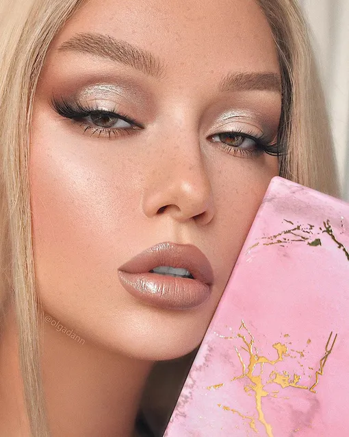 Серебро выигрышно смотрится в холодной гамме, поэтому перед нанесением металла позаботься о «каркасе». Что мы имеем в виду? Подчеркни складку и нижнее веко холодными коричневыми тенями, а только уже потом добавляй серебро на подвижное веко. Также не забудь о черной стрелке — дополни свой гламурный образ в стиле Ким Кардашьян!