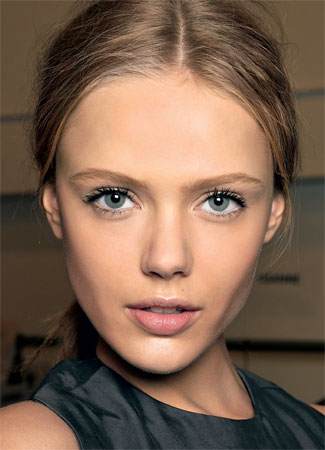 - Финальный шаг – легкий, почти незаметный слой туши на верхних ресницах. И помада nude на губах.