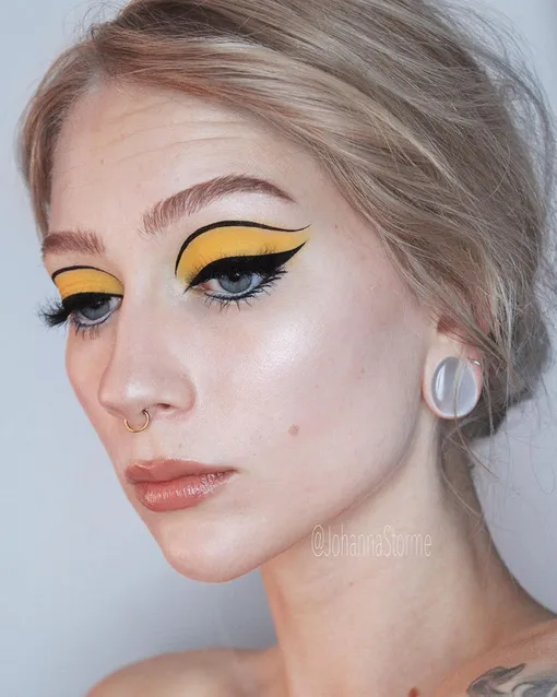 Так в чем же преимущество банановой подводки для глаз? Да, этот яркий акцент, вероятно, будет странно смотреться в повседневном макияже. Однако если речь идет о какой-нибудь костюмированной вечеринке, маскараде или любом другом празднике, банановая подводка окажется кстати! Это особенно актуально в период новогодних корпоративов: может, именно на шумном торжестве с коллегами тебе захочется разнообразить свой макияж необычной подводкой в стиле Твигги.
