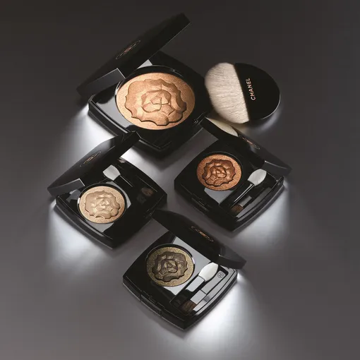 На средствах, входящих в коллекцию MAXIMALISME DE CHANEL, красуется царь зверей во всем великолепии: львиная голова вытиснена на созданной специально для этой коллекции компактной пудре-хайлайтере LE LION DE CHANEL и на стойких пудровых тенях для век OMBRES PREMIÈRE четырех лимитированных оттенков, где стилизованная мордочка и грива сверкают, как драгоценности.