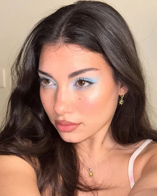 Голубые тени могут быть полупрозрачными и едва заметными или, наоборот, более плотными и сияющими. И, что важно, он работает с любым цветом глаз: усиливает голубые оттенки и делает карие и зеленые более выразительными. Ниже я покажу и расскажу тебе, какие макияжи ты можешь сделать, чтобы примерить макияж на себя!