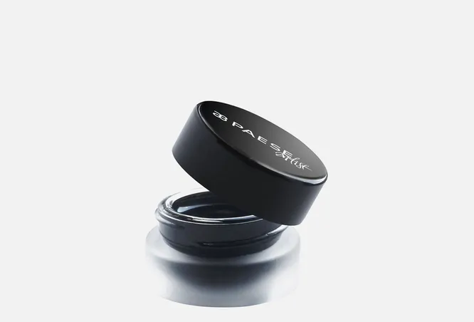 Гелевая подводка мягко ложится и хорошо тушуется. Чтобы сильнее подчеркнуть мерцающий пигмент, используй черный лайнер в качестве подложки.