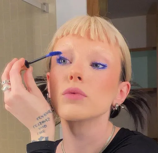 Сейчас популярные блогеры носят далеко не один вариант синего, а целую палитру: насыщенный кобальт, глубокий темно-синий, бирюзовые и индиговые оттенки. Более яркие делают макияж выразительным и драматичным, а темные работают почти как классическая черная тушь, но с более мягким эффектом.