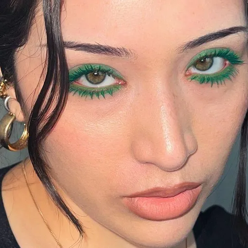 Пожалуй, самый недооценный цвет в нашей сегодняшней подборке. Именно он дает тот самый едва уловимый холодный контраст, который моментально делает взгляд более открытым и объемным. Можешь использовать более светлые зеленые тени и более яркую тушь, чтобы добиться максимального эффекта.