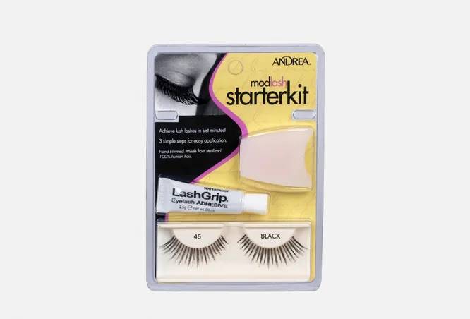Американский косметический бренд ANDREA предлагает целый набор для тех, кто впервые решил самостоятельно заняться наращиванием ресниц. В нем есть не только клей для наращивания ресниц без испарений, но и сами ресницы с пинцетом и удалителем.