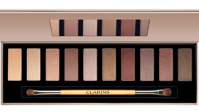 Clarins представляет палитру Essentials Palette из 10 оттенков теней для век в компактном футляре.