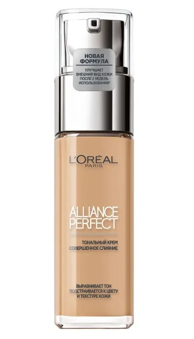 Если ищешь хороший бюджетный тональный крем, присмотрись к Alliance Perfect. Крем имеет легкую текстуру для создания идеального натурального тона кожи. Формула продукта содержит гиалуроновую кислоту, глицерин и алоэ вера, которые обеспечивают прекрасный уход и увлажнение. Наличие в составе витаминов B6 и E помогает в борьбе с первыми возрастными проявлениями.