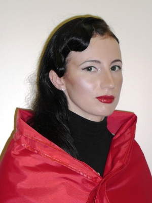 На верхнее подвижное веко наносим тени цвета «шампань» и холодный розовый, глазную складку обозначаем фиолетовыми тенями. | Наносим на губы яркую алую помаду. |