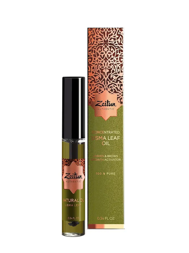 Бренд Zeitun производит масло усьмы для роста бровей и ресниц на основе 100% натурального исходного материала и обещает, что препарат будет «феноменально эффективно» действовать. В переводе на язык цифр это означает, что после применения густота волосяного покрова ресниц и бровей должна увеличиться минимум в два или три раза. При этом препарат достаточно применять лишь дважды в неделю в течение одного месяца. Наносить масло следует перед сном.