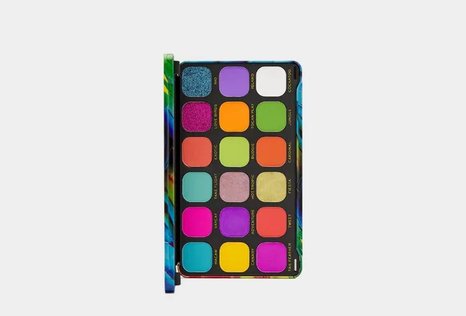 Палетка включает 18 ярких тропических оттенков, с помощью которых можно создать броский и незабываемый макияж. Высококачественные пигменты позволяют теням идеально ложиться на веки в один слой, при этом они хорошо растушевываются, позволяя добиться плавного перехода оттенков, сгладить линии нанесения.