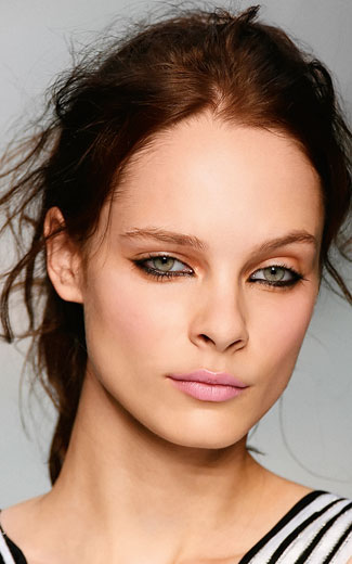 Четкий, нарочито небрежный контур идеально подходит для игры в стиле гранж. Тени мягких оттенков уравновесят жесткую линию карандаша. Румяна и помада в розовых тонах «играют» дуэтом!