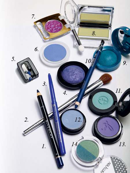 1. Карандаш Magic Khol №4 от Givenchy. 2. Кисть Eye Shadow Brush от Clinique. 3. Карандаш Stylo Regard Waterproof №02 от Yves Rocher. 4. Eyeshadow Lumiere Purple Amethyst от Make-Up Studio. 5. Точилка для карандашей от Chanel. 6. Silky Shadow Satiny №277 от Seventeen. 7. Chrome Intensity №180 от L’Oreal Paris. 8. Colour Surge Eye Shadow №205 от Clinique. 9. Ombre A Paupieres №02 от Bourjois. 10. Карандаш Multiplay №04 от Pupa. 11. Maestro Eye Shadow №15 от Giorgio Armani. 12. Earth Spirits №132 от Max Factor. 13. Monobulle №791 от Agnes b. 14. Veryme Eye Envy №20345 от Oriflame.