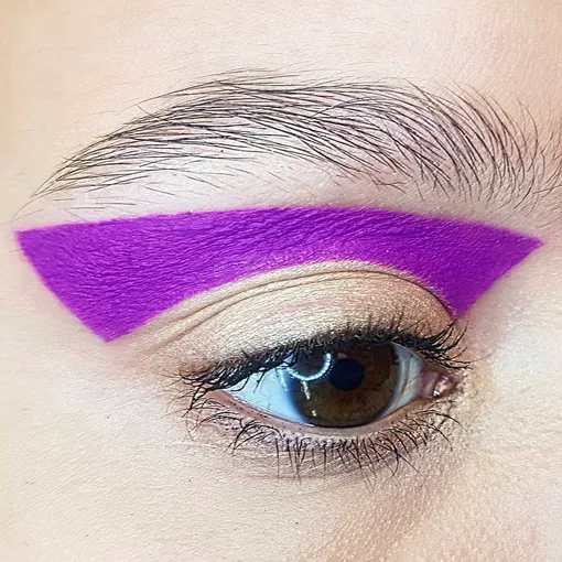 Графичные стрелки – самый модный бьюти-тренд не только российского, но и зарубежного Instagram (Социальная сеть признана экстремистской и запрещена на территории Российской Федерации). Хотя, конечно, все это многообразие форм, цветов и линий стрелками назвать уже трудно. Скорее это креативный графичный макияж глаз. Я решила протестировать 2 макияжа, выполненных визажистами @maccosmeticrussia с использованием всевозможных подручных средств и продуктов. Начать я решила с жирных стрелок цвета фуксии. По-хорошему, здесь не помешало бы приложить трафарет или линейку, но за неимением подобных девайсов я сперва нарисовала контур жидкой подводкой для глаз похожего фиолетового оттенка, а затем закрасила пустое поле жидкой помадой МАС. Верхнее веко, как и в оригинальном варианте, слегка покрыто легкими золотыми тенями, а ресницы немного накрашены черной тушью.