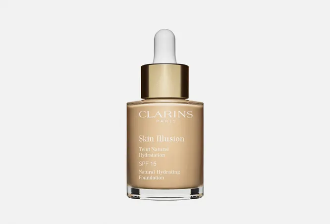 Увлажняющий тональный крем для сухой кожи от премиального косметического бренда CLARINS, который присутствует на рынке более 65 лет и заявляет, что в его формулах использованы более 250 различных растений. Так, в серии Skin illusion в качестве компонентов заявлена водоросль жания рубенс, придающая коже сияние, и каланхоэ, стимулирующее естественное увлажнение.