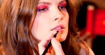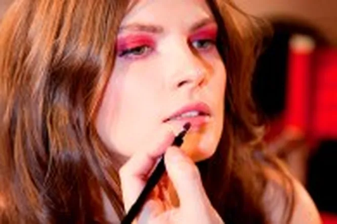 - Добиться красновато-розового тона на веках тебе помогут карандаш для губ и румяна. Мягкой кистью растушуй на веках карандаш для губ 02, Ruby, затем легкими похлопывающими движениями нанеси матовые румяна Blush Prodige 03, Miami Pink.