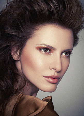 Для моделирования формы лица используй близкие к бронзовому матовые и перламутровые румяна: матовый оттенок нанеси на нижнюю часть скул, а перламутровый – на лоб, верхнюю часть скул, переносицу, подбородок. Чтобы все смотрелось более естественно, лучше еще раз слегка припудрить лицо.