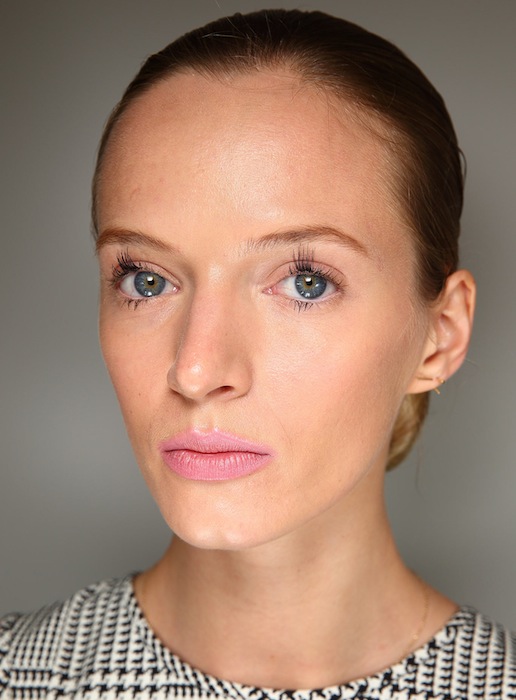 Вместо зачесанных назад волос — аккуратнейший пробор сбоку, вместо обесцвеченных бровей — напротив, акцент на них. Но сияющая кожа и подчеркнутые румянами скулы присутствовали и тут. Естественность и практичность — такой будет формула самого актуального образа сезона.