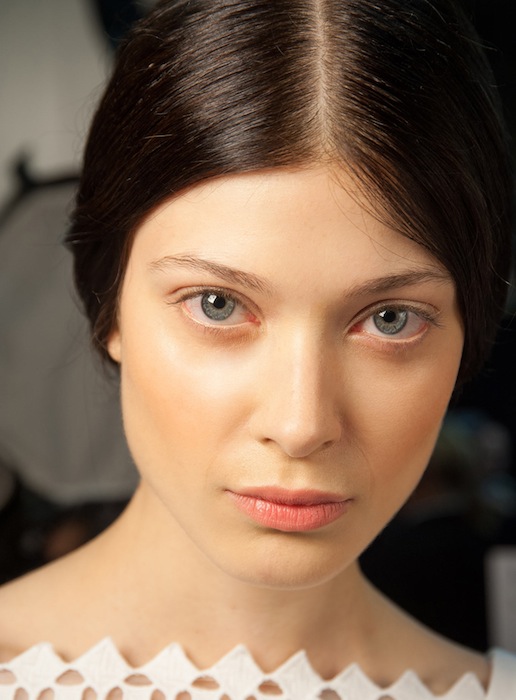 Моделями с шоу Mary Katrantzou доказано: сделать образ сногсшибательным можно с помощью одних только локонов, если только сделаны они «правильно». Подкручивать стайлером нужно тонкие пряди, но завитки при этом не должны быть мелкими — только при соблюдении этих условий прическа получится естественной, а еще одновременно нежной и сексуальной. Чтобы выглядеть безупречно, тебе останется только выровнять тон кожи подходящим тональным средством — лучше всего выбрать продукт с эффектом легкого сияния. Хотя обычно с этого создание макияжа только начинается, в этом случае работа над тоном будет завершающим штрихом.