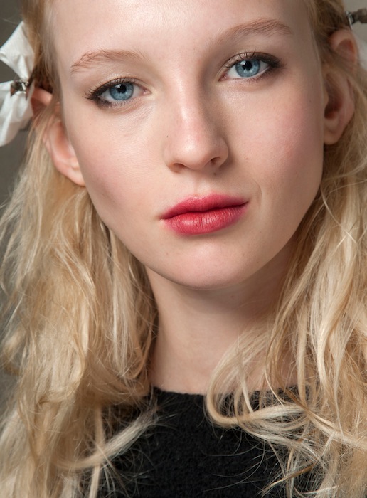 По словам стилиста Энтони Тернера (Anthony Turner), образы для подиума вдохновлены девушками-подростками, голова которых забита весельем с друзьями и влюбленностью. Второе, к слову, подтолкнуло визажистов к тому, чтобы накрасить губы моделей малиновой помадой так, чтобы границы были размытыми, будто красавицы как раз перед выходом на подиум насладились поцелуем от любимого. Внешние уголки глаз у них по-тинейджерски подведены черным карандашом. Мягкие волнистые слегка спутались, но выглядели благодаря этому естественно и придавали девичьим образам чувственности.