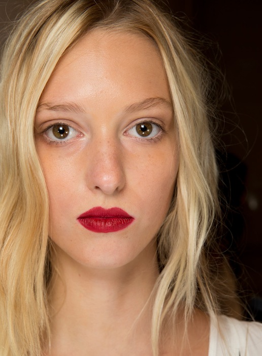В Доме Burberry, как и вообще во всем Туманном Альбионе, с особым трепетом относятся к классике и традициям. В макияже и прическах, которые моделям делали для показа бренда, это тоже проявилось. Визажисты решили сделать основной акцент в образе на губы цвета красной розы (она, к слову, по сей день является символом Англии), несмотря на то что последние несколько сезонов красную помаду на подиуме почти не видать. Хотя алый на губах — это чаще всего орудие соблазнения, в данном случае этот оттенок смотрелся очень мягко и даже несколько сдержанно.
