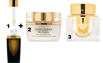 | Крем для век — средство, экономить на котором не стоит. Две оправданно дорогие новинки — крем L'Or De Vie от Dior (3) и пара Re-Nutriv Re-Creation Eye от Estee Lauder. L'Or De Vie содержит комплекс молекул полифенолов, сильный антиоксидант, добываемый только в одной точке мира.