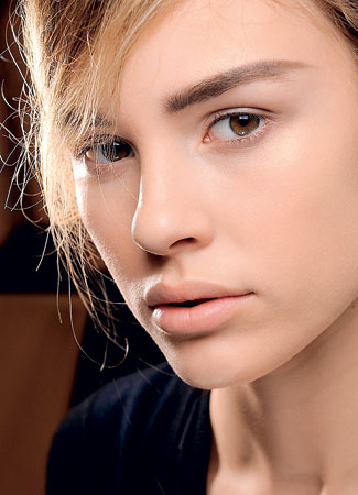 Очень стильно будут смотреться ярко накрашенные глаза и бледные губы или яркие губы и ненакрашенные глаза. Выбирай тени ежевичных, бежевых и кофейных оттенков. Если хочешь поэкспериментировать с макияжем с показов, будь осторожна со всеми средствами, придающими блеск коже. Кстати, опять в моде аккуратно очерченные контурным карандашом губы.