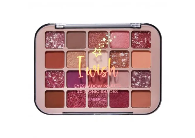 Фанатки больших бьюти-наборов точно оценят зимнюю «лимитку» от Faberlic! В этой палетке собрано сразу 20 оттенков теней для век: в матовой, перламутровой, сатиновой, мерцающей и металлизированной текстуре. Все цвета отлично сочетаются между собой и позволяют создать как дневной, так и праздничный образ. Особенно для новогодней поры подойдут варианты с крупными блестками. Их можно растушевывать по всей области века или использовать акцентно — например, чтобы имитировать эффект стрелок.
