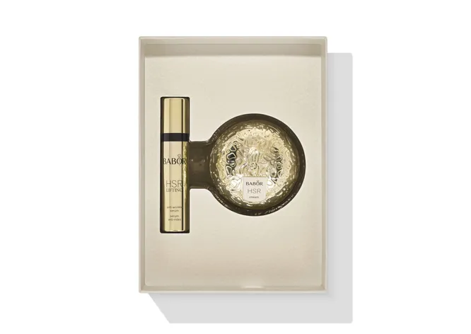 Пептидная линия HSR lifting от Dr. Babor — эксперт в борьбе с морщинами еще с 1986 года, так что в эффективности этих легендарных средств сомневаться точно не стоит. Однако подарочный набор не только обеспечит интенсивный уход, но и подарит эстетическое наслаждение. Только посмотри на этот драгоценный футляр крема против морщин — кажется, ему самое место на елке :) Его дополняет легкая сыворотка в золотистом флаконе, которая отлично проявляется в борьбе с морщинами межбровья и «гусиными лапками».