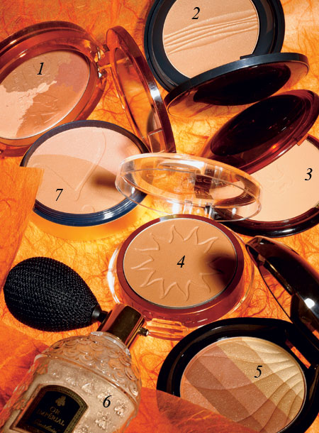 1. «Солнечная палитра» от Eva. 2. Bronzing Powder оттенка Deep Tan от Sensai. 3. Terracota Bronzing Powder от Guerlain. 4. Glam Bronze №04 от L’Oreal. 5. Terra-Cotta Glow от Shiseido. 6. Or Imperial от Guerlain. 7. So-Bronze 3 от Jane Iredale