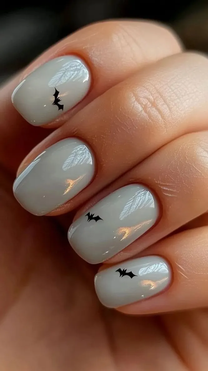 Полумесяц френча нарисовать трудно, а вот такое маленькое привидение — гораздо проще. Ну, а чтобы добавить ему глаза шпилькой или зубочисткой, понадобится буквально пара секунд.
