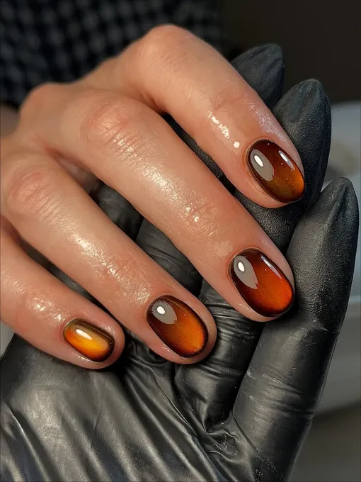 Шоколадные оттенки переживают свой звездный час, плавно сменив долгое доминировавшие до этого кофейные тона. С такими цветами можно играть: делать микро-френч, покрывать ногти хромом или делать «кошачий глаз». В тандеме с ультраглянцевым финишем этот маникюр выглядит просто потрясающе.