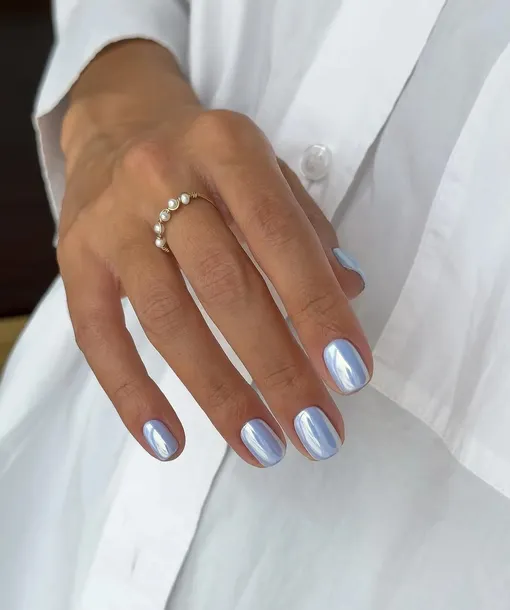 Для самых холодных дней года нет маникюра эффектнее, чем ледяной голубой хром. Он выглядит свежим, чистым и по-настоящему зимним. С ним любой день будет выглядеть ярче, а ты почувствуешь себя героиней любимой сказки.