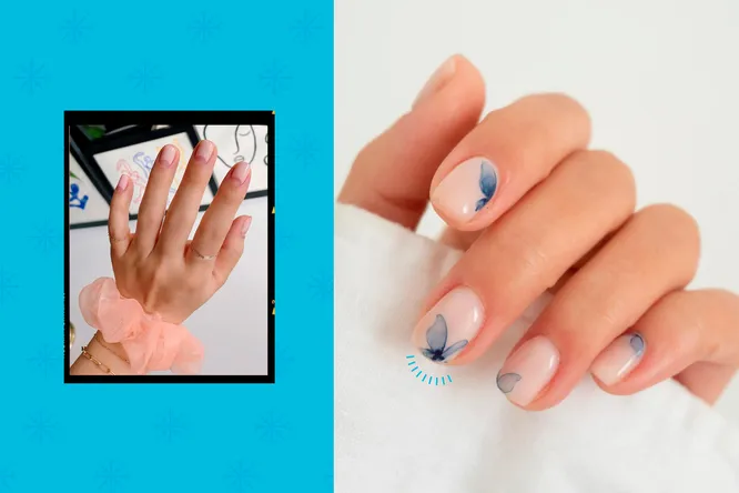 Мотивы цветочков и бабочек обычно ассоциируются с весной, но этот маникюр доказывает. что нежные детали прекрасно работают и зимой. Просто замени пастель на глубокий холодный синий и поэкспериментируй с расположением дизайна.