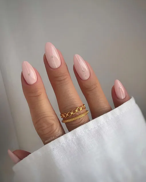 Нюд — основа всего, самая востребованная часть палитры, поэтому без нее мы никуда. А чтобы добавить изюминку маникюру, можно поставить парочку еле заметных серебряных точек на ногтях. Такая она, тихая роскошь в действии :)
