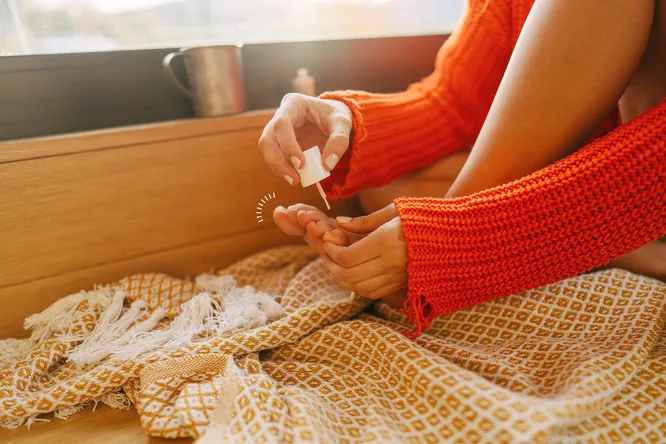 Кстати, если делаешь педикюр вечером, нанеси средство плотным слоем и надень носки — это усилит эффект во время сна.