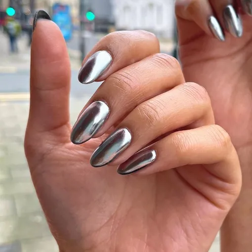 «Серебряные ногти — отличный способ без особых усилий сделать образ гламурнее», — говорит На’Таша Симмонс — создательница собственной линейки веганских лаков для ногтей.