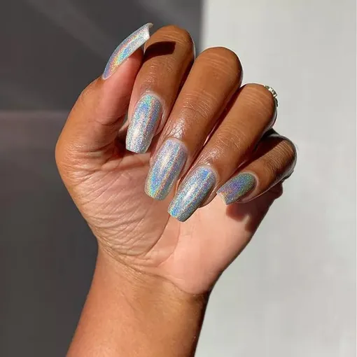 Да, эти ногти серебряные, однако ты можешь увидеть все цвета радуги,когда на них падает солнечный свет.