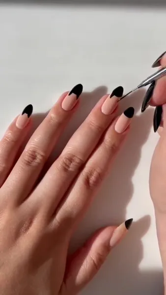 Если ты думала, что черный маникюр — это всегда строго и немного скучно, этот дизайн тебя переубедит. Милые кошачьи мордочки превращают классический темный лак в игривый и очень стильный вариант, который хочется рассматривать. Такой маникюр выглядит эффектно, но при этом не требует сложных навыков.