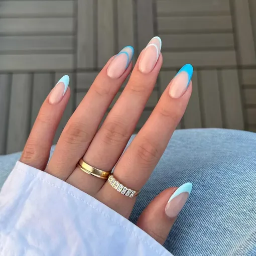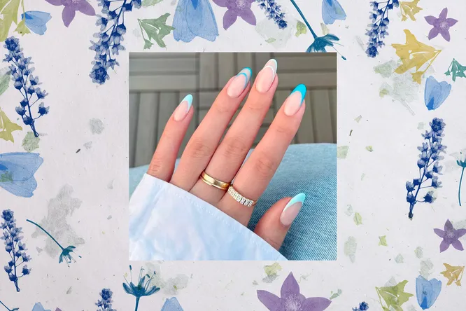 Смени темные зимние оттенки на более легкие весенние — например, нежно-голубой. А чтобы маникюр выглядел еще интереснее, добавь французский дизайн с тонкими линиями: такой акцент делает ногти выразительнее и свежее.
