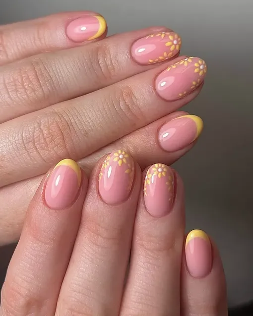 Маленькие цветы мгновенно добавляют маникюру настроения. В этом дизайне они выполнены в стиле французского маникюра и выглядят легко и свежо, создавая по-настоящему солнечное и оптимистичное настроение.