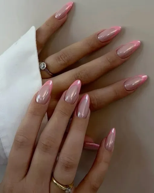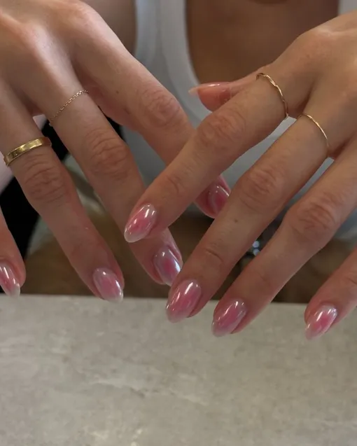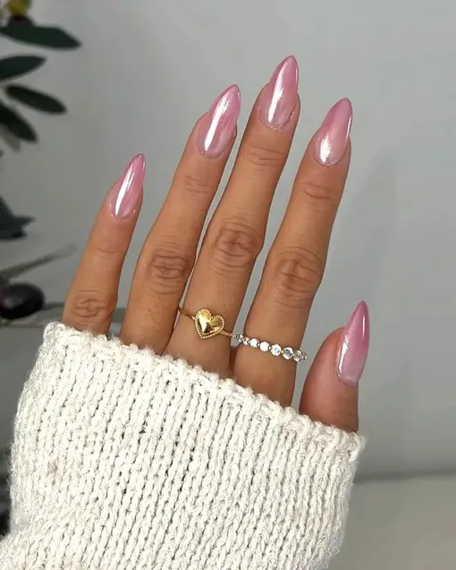 Розовый лак весной 2026 года снова в центре внимания, но уже в более изящной и современной версии. Полупрозрачные текстуры, хромированные переливы и желейный финиш делают маникюр легким, сияющим и при этом аккуратным.
