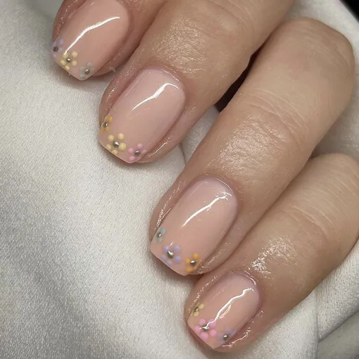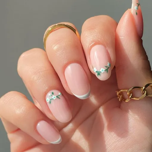 Французский маникюр уже давно перестал быть только классикой с белыми кончиками. Сегодня мастера все чаще дополняют его аккуратными цветочными деталями, пастельными оттенками и нежными рисунками, которые делают дизайн более интересным и современным.